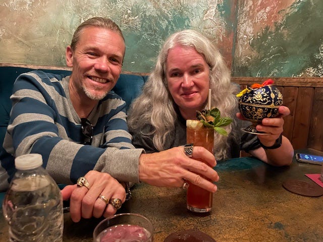 Shortly after we returned to LA and returned Arabella to the car rental, I hopped the train to San Diego for Stokercon! I kicked off four days of the annual HWA horror hang with my horror bestie, Lisa Morton, and we went on a haunted tour of The Whaley House in Old Town San Diego. Spoiler alert: It did not feel terribly haunted, but the tour was delightful and I was most interested in this 19th century Whaley guy who bought property on the cheap because it used to be the town gallows, built a house and made a ton of $ off his private residence, from running the courthouse out of one room, a shop out of another and a theater upstairs. Afterwards, with dear friends Ricky Grove, and Eric J. Guignard (who is a marvelous writer and editor), we went down the street to the speakeasy Oculto 477 and had some trippy drinks set on fire and smoked and such. It’s always a creepy time with Lisa.